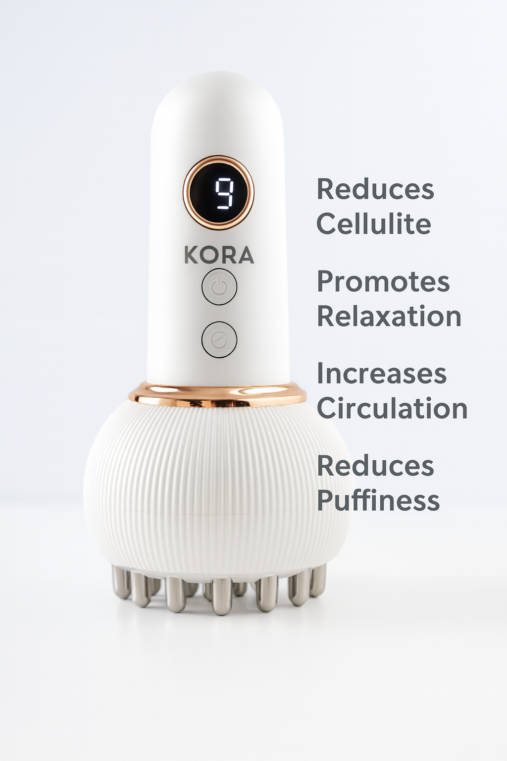 I was honestly skeptical at first but KORA blew my expectations away. After using it on my thighs and stomach for 10 minutes a day, my skin looks noticeably smoother and more toned. The puffiness in my legs is gone and it feels so relaxing after long days. It’s now part of my nightly routine!